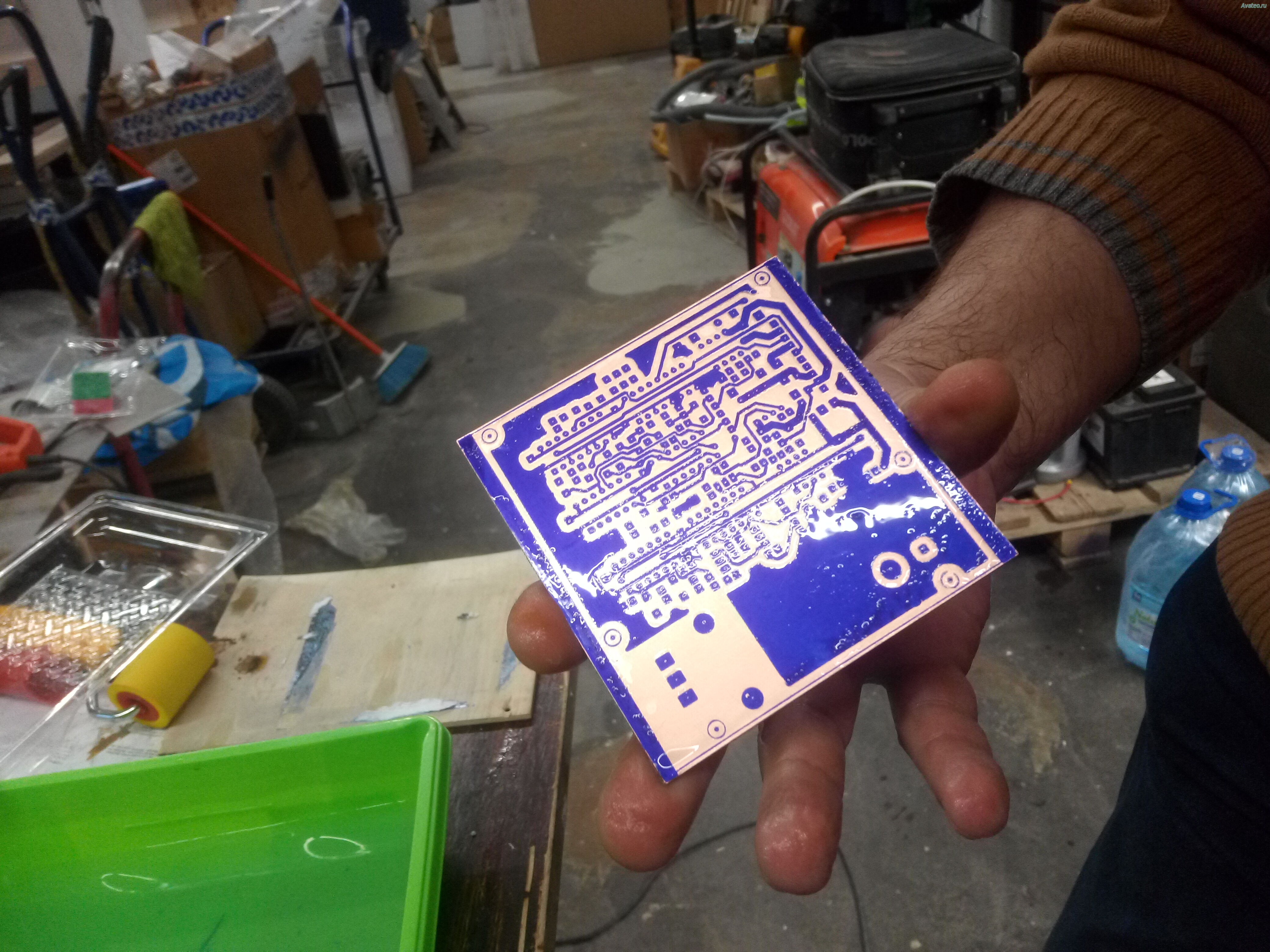 Правильно проявленная плата имеет чёткий контраст: чистая блестящая медь там, где планируется травление, и по-прежнему покрытые слоем зелёного (синего, фиолетового – какого цвета резист) дорожки.