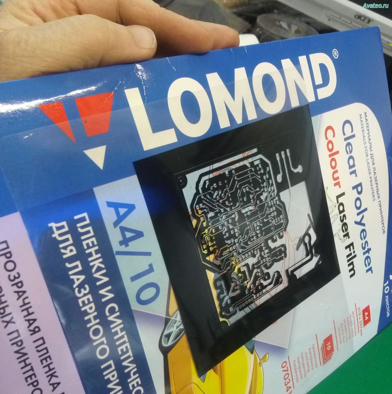 Итак, для плёнки: в приглушенном свете отрежьте кусок плёнки чуть больше размера платы. С одной стороны пленки защитная подложка тонкая (как полиэтилен), с другой – толстая.
